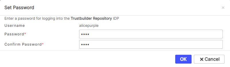 Set a new password for the user and click on OK. This password is temporary: it will help the user to reset its own password from the Self Service portal.