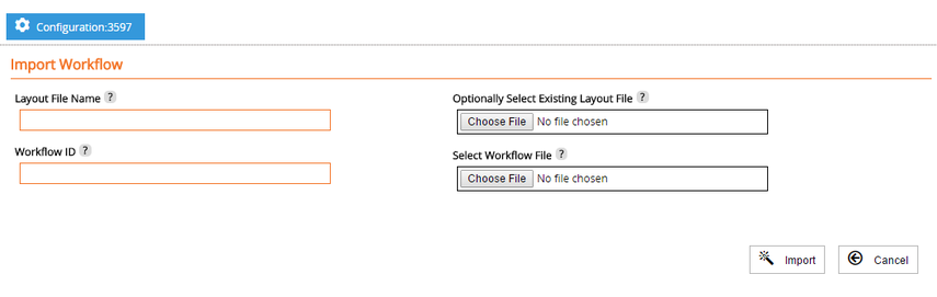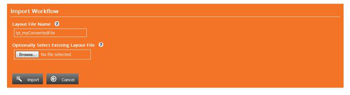 Select Existing Layout File | If a layout file has also been supplied with the workflow.xml file this can also be uploaded. | no |